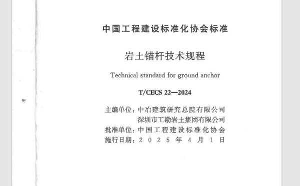 由中國工程建設標準化協會批準的《T/CECS22-2024巖土錨桿技術規程》(以下簡稱“新《規程》”)正式發布。該規程于2024年11月12日發布,并將于2025年4月1日起正式施行,全面替代原《CECS22:2005》版本。此次修訂與發布是我國巖土錨固工程技術領域標準化建設的一項重要成果,對提升行業技術水平、保障工程質量安全、促進行業健康發展具有重要指導意義。