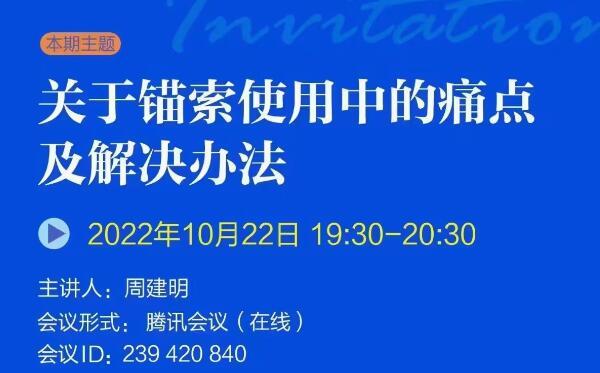 巖土錨固學(xué)苑將于2022年10月22日(周六)19:30-20:30舉辦第6期,本期主題:關(guān)于錨索使用中的痛點(diǎn)及解決辦法,歡迎廣大巖土錨固領(lǐng)域愛(ài)好者參與交流。...