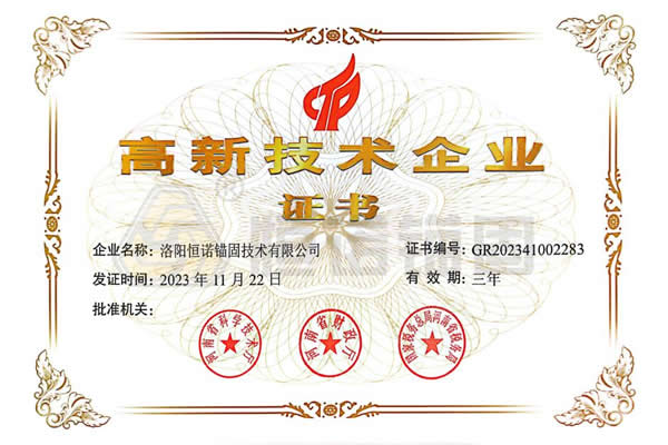 洛陽恒諾錨固技術(shù)有限公司是一家持續(xù)聚焦巖土錨固領(lǐng)域的高新技術(shù)企業(yè),致力于為客戶提供包含應(yīng)用技術(shù)咨詢、項目調(diào)研、產(chǎn)品選型、施工設(shè)備配套、現(xiàn)場樣品試驗、施工技術(shù)培訓(xùn)、施工現(xiàn)場服務(wù)等的系統(tǒng)解決方案,幫助客戶提高施工效率,降低綜合施工成本。