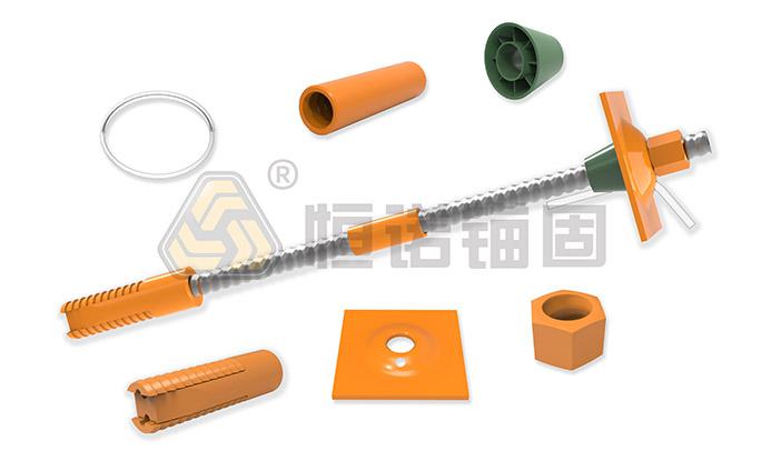 先錨式中空錨桿主要分為機械錨固和黏結錨固兩種形式,由中空錨桿體、漲殼錨頭、連接套、墊板、螺母組成,型號包含R25、R32、R38,主要用于鐵路隧道拱部的系統支護工程。