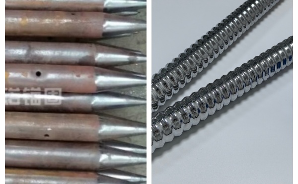 桿體材質 40Cr高強度合金鋼,壁厚大。 普通無縫鋼管,壁厚較薄